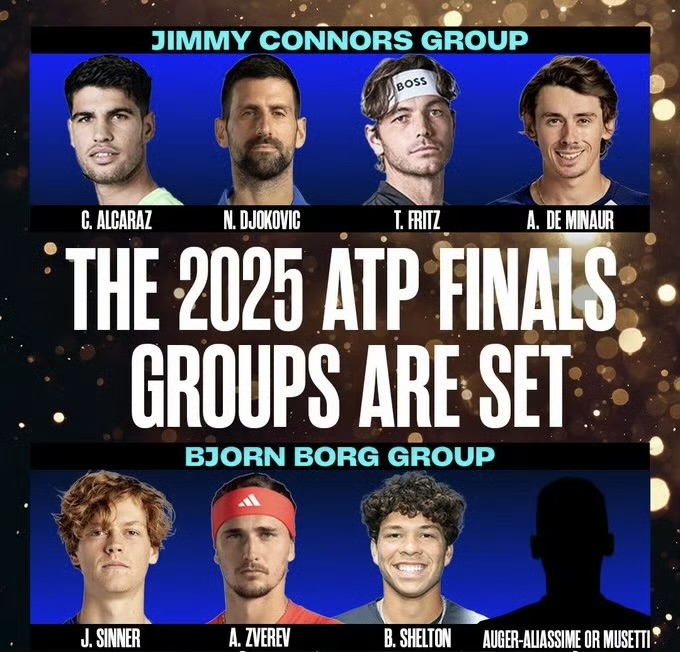 The most notable aspect is Djokovic and Alcaraz both being placed in the “Jimmy Connors Group.” This sets the stage for a highly anticipated “old guard vs. new generation” showdown, likely unfolding during the group stage. Fritz and de Minaur, also in the group, have strong form and multiple wins over top players this season, making the competition for advancement extremely fierce.