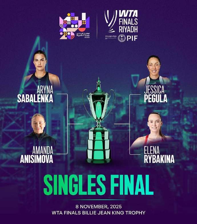 In another match, the fifth seed American Pegula convincingly beat the eighth seed, Italian powerhouse Paolini, 6-2, 6-3, improving her round-robin record to two wins and one loss, and advancing as the group’s second place. Defending champion Gauff managed only one win in the group stage, finishing with one win and two losses, and failed to qualify. The semifinals matchups are Sabalenka vs. Anisimova and Pegula vs. Rybakina.