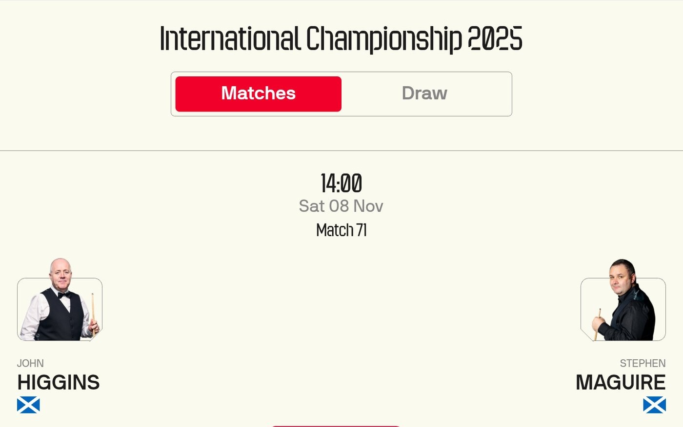 Tomorrow features another semifinal, where Higgins will compete against Maguire. Here are the details.
