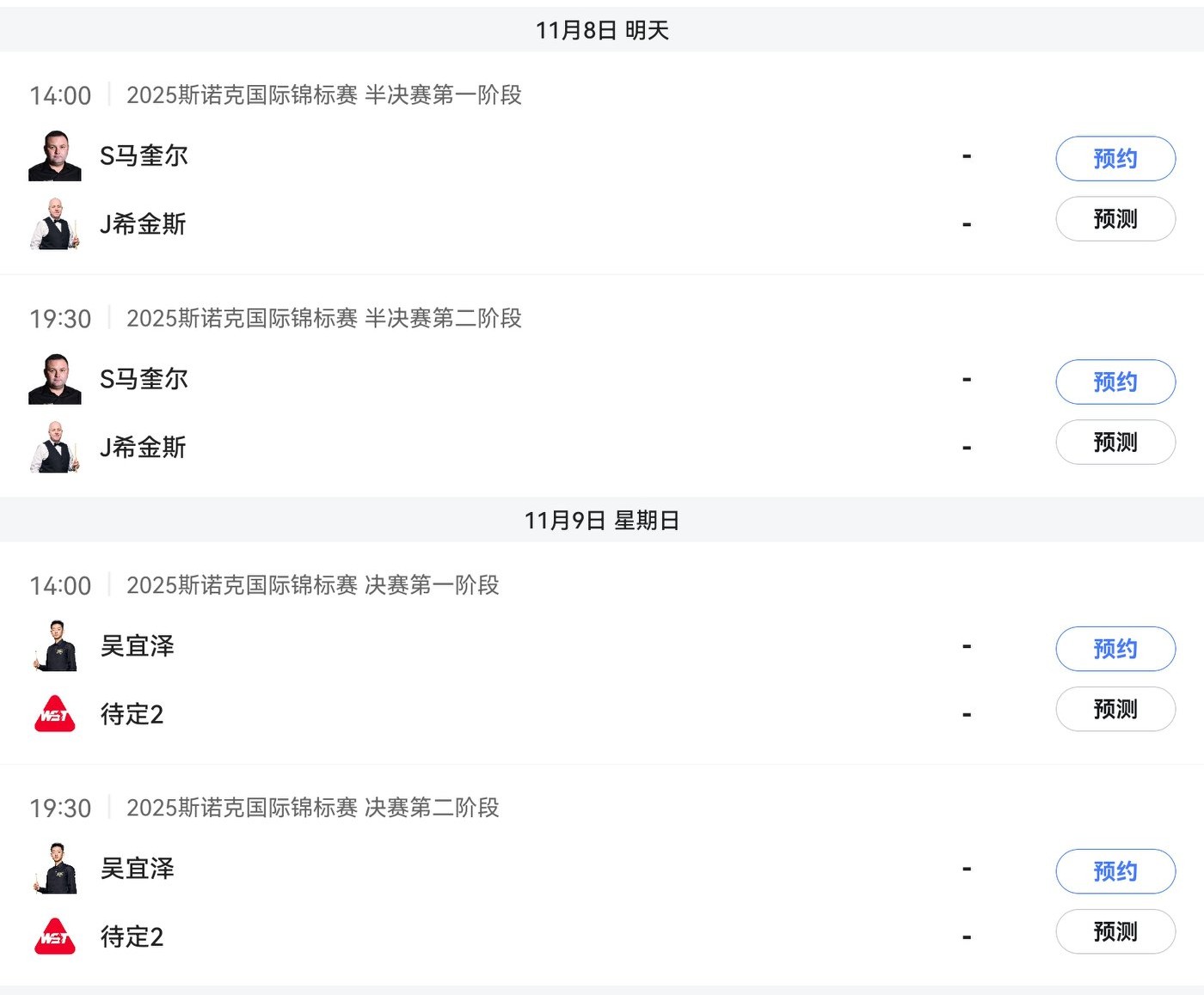 Wu Yize will compete in the Snooker National Championship final the day after tomorrow (2025.11.9), with live coverage on CCTV-5, Migu Video, and Huya Live.