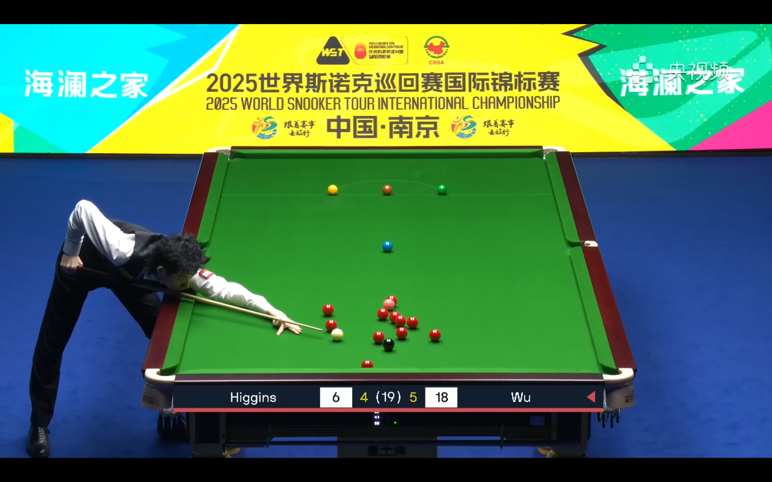 The match follows a best-of-19 frames format, with the first phase completed this afternoon. Wu Yize leads Higgins 5-4. Tonight’s play continues until one reaches 10 frames to win the title. They have just started the ninth frame, where Wu Yize holds an 18-6 points advantage over Higgins.