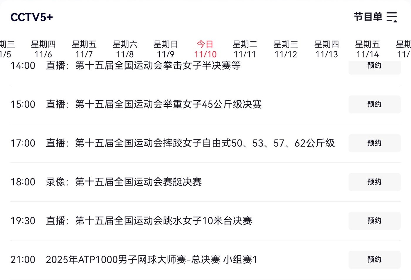 The women's 10-meter platform diving final at the National Games is today (2025.11.10), featuring Chen Yuxi, Zhang Jiaqi, and others, live on CCTV-5+.