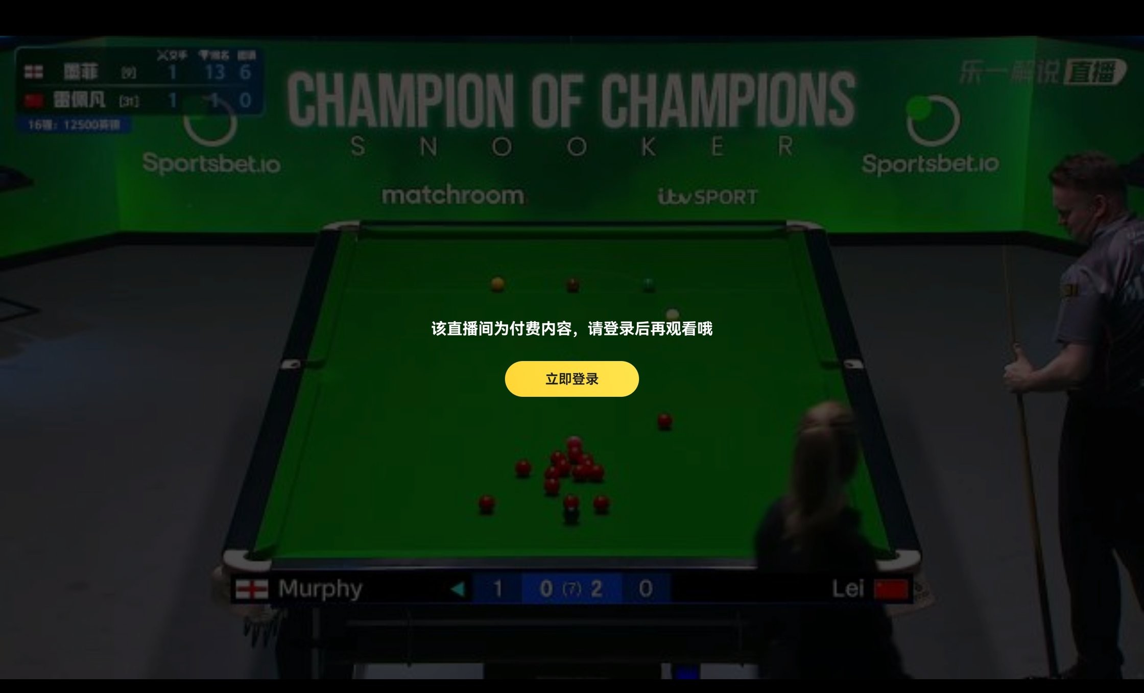 The Huya platform is streaming the paid live broadcast of the Snooker Champion of Champions match between Lei Peifan and Shaun Murphy.