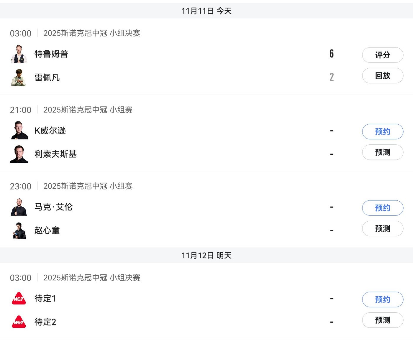 The second group match will be at 11 PM tonight, with Zhao Xintong facing Mark Allen.