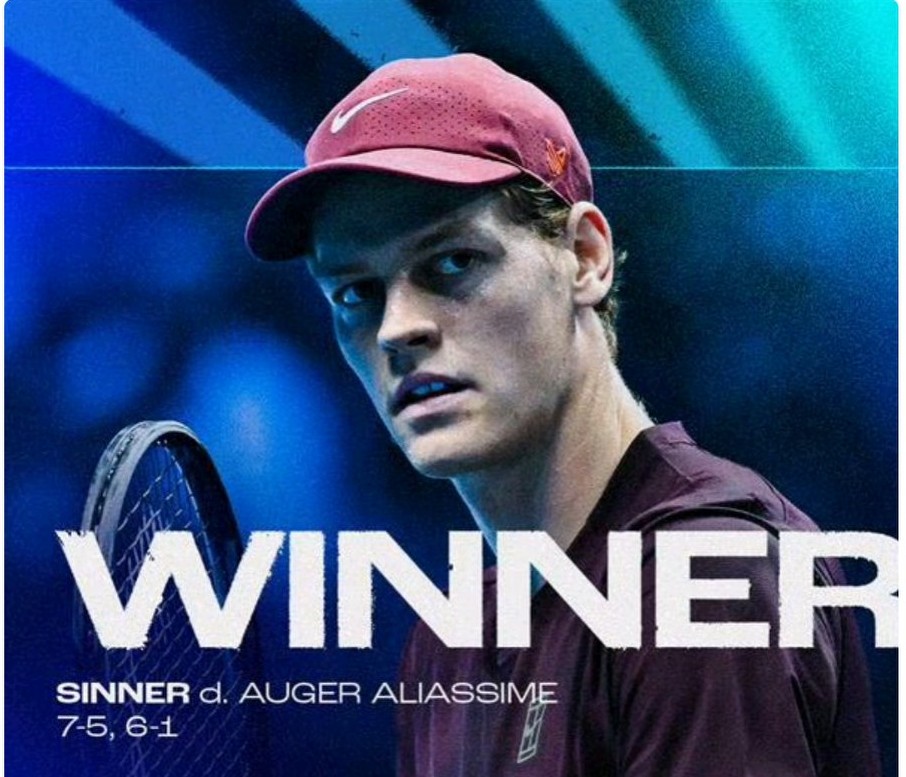In the opening match, Sinner swept Aliassime 2-0, with set scores of 7-5 and 6-1.