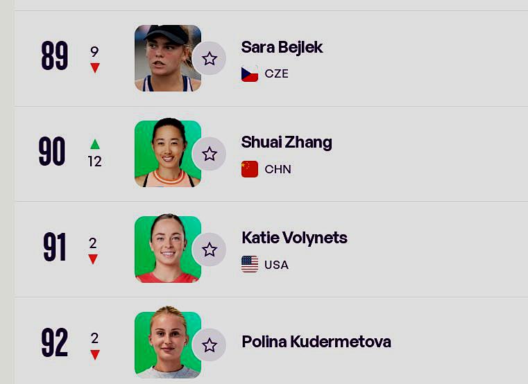 Now, let's look at the latest WTA world rankings. Today, Beijing time, the WTA updated the rankings. Chinese veteran Zhang Shuai, who avenged Korean player Kwon Yeon-woo in the Yokohama W50 final with a 6-3, 6-2 win, reentered the Top 100 in singles after more than two years, rising to 90th place. She has also secured her spot in the 2026 Australian Open main draw. This week, Zhang continues to compete in the Angers 125K tournament. Let's wish her continued success!