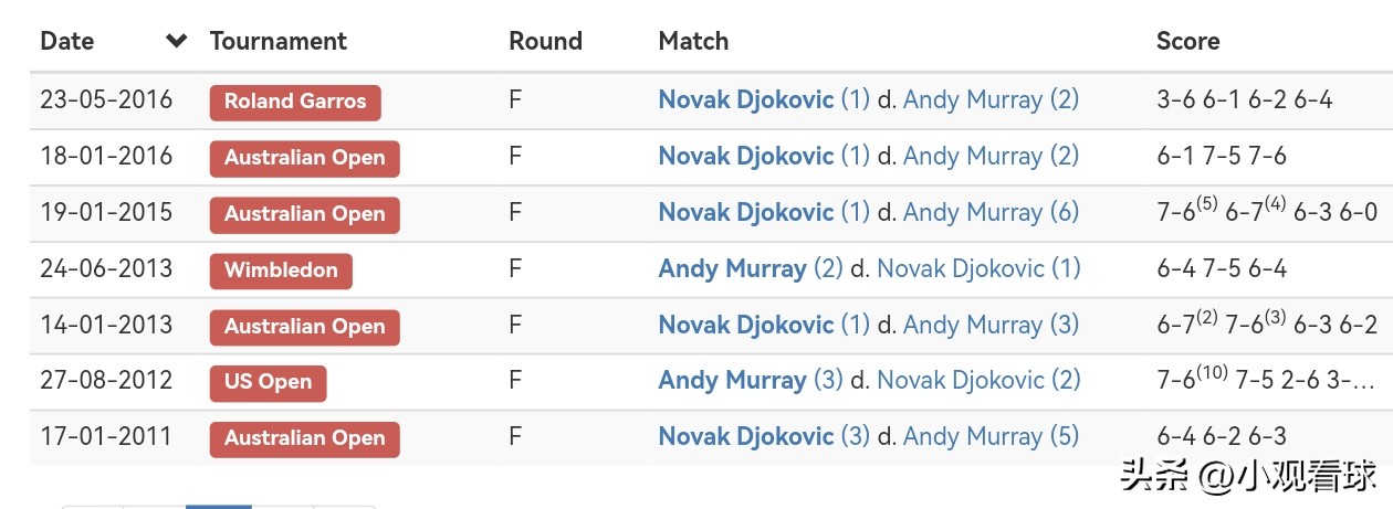 Between 2011 and 2016, they met seven times in Grand Slam finals: