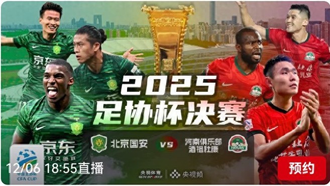 The FA Cup final tomorrow (2025.12.6) features Beijing Guoan against Henan, with live broadcasts on CCTV-5 and Yangshipin.