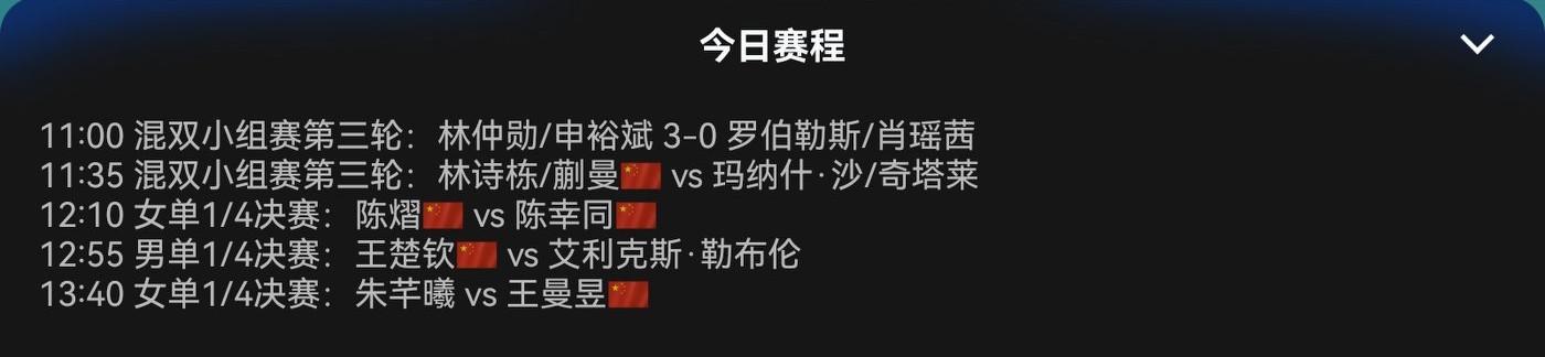 Furthermore, the detailed daytime schedule is shown in the image below. Wang Chuqin? Sun Yingsha, Wang Manyu, Chen Xingtong, and Chen Yi will compete, with live coverage on CCTV-5. Everyone is welcome to watch.