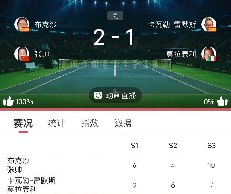 While fans argued fiercely in the chat, Zhang Shuai regrouped and quickly restored faith by responding with a 6-3 win over Fredesam, leveling the match score.