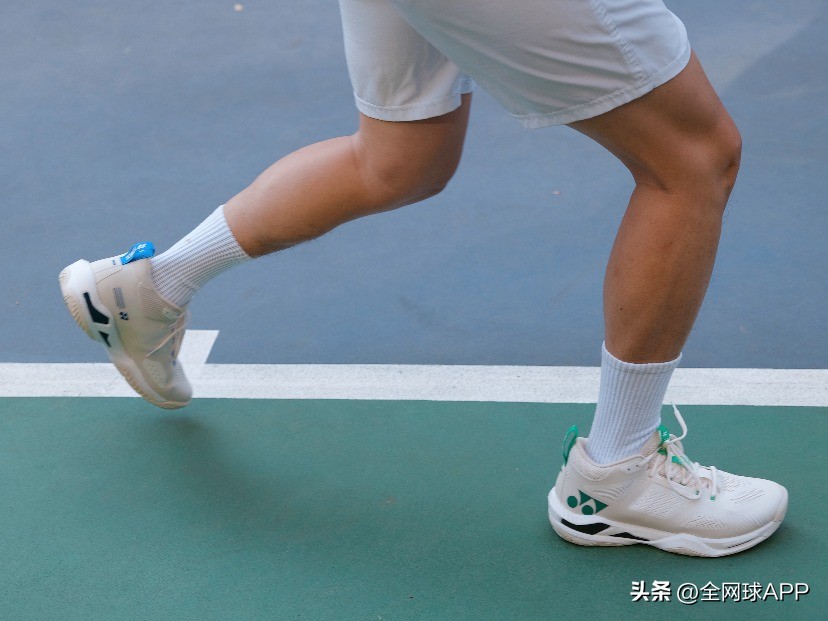 As an Asian with generally wider forefeet, I’m quite particular about the space inside tennis shoes, and this pair did not disappoint. The interior is roomy with no tightness or pressure on the forefoot. Combined with slow-rebound insoles providing personalized support, sudden stops and quick turns feel secure and stable. The high-top silhouette pays homage to YONEX’s classic design while enhancing wraparound support. Whether moving fast or making powerful pivots on the court, the shoe fits snugly without any wobbling.