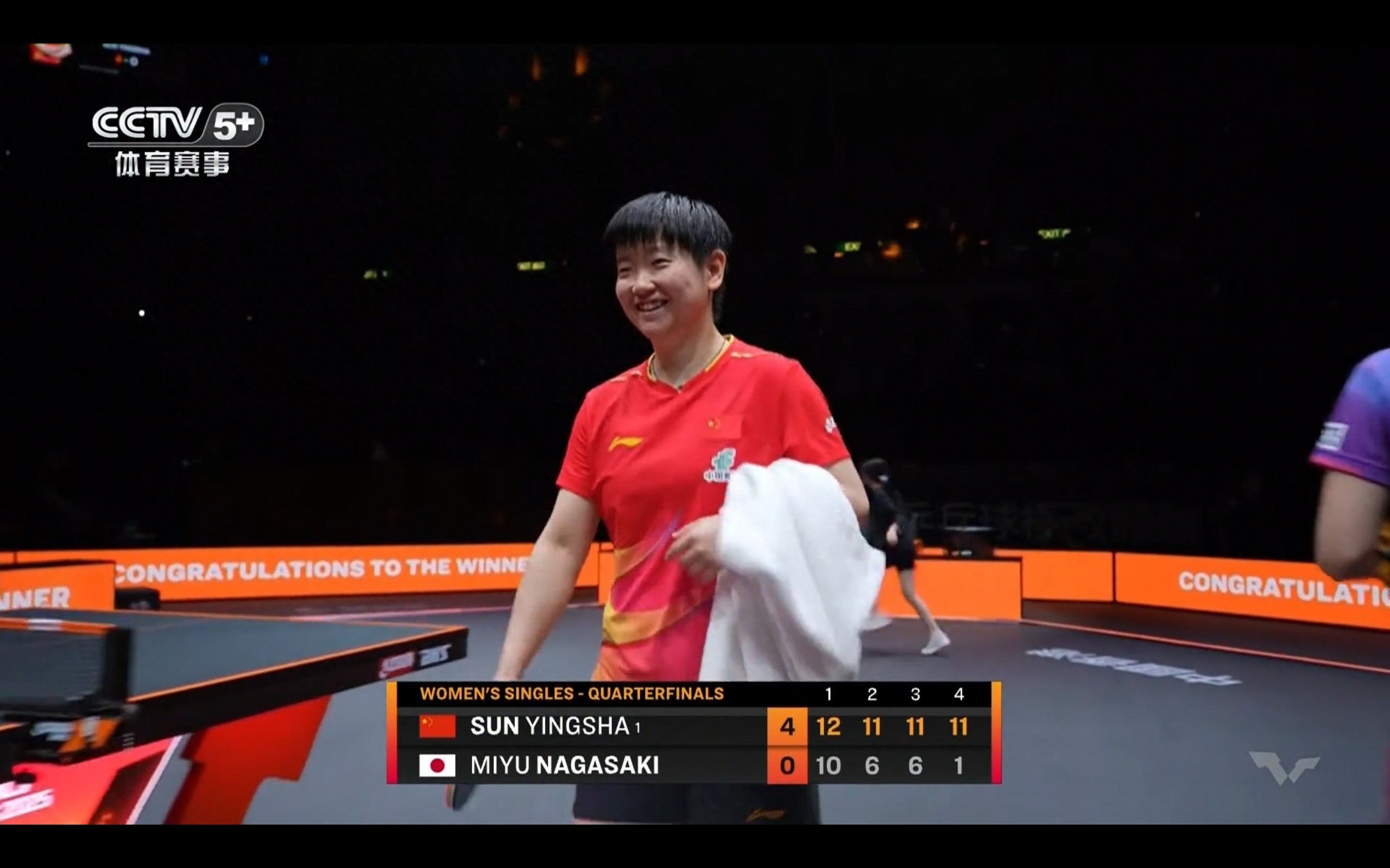 Sun Yingsha swept Nagasaki Miyu 4-0 to reach the semifinals.