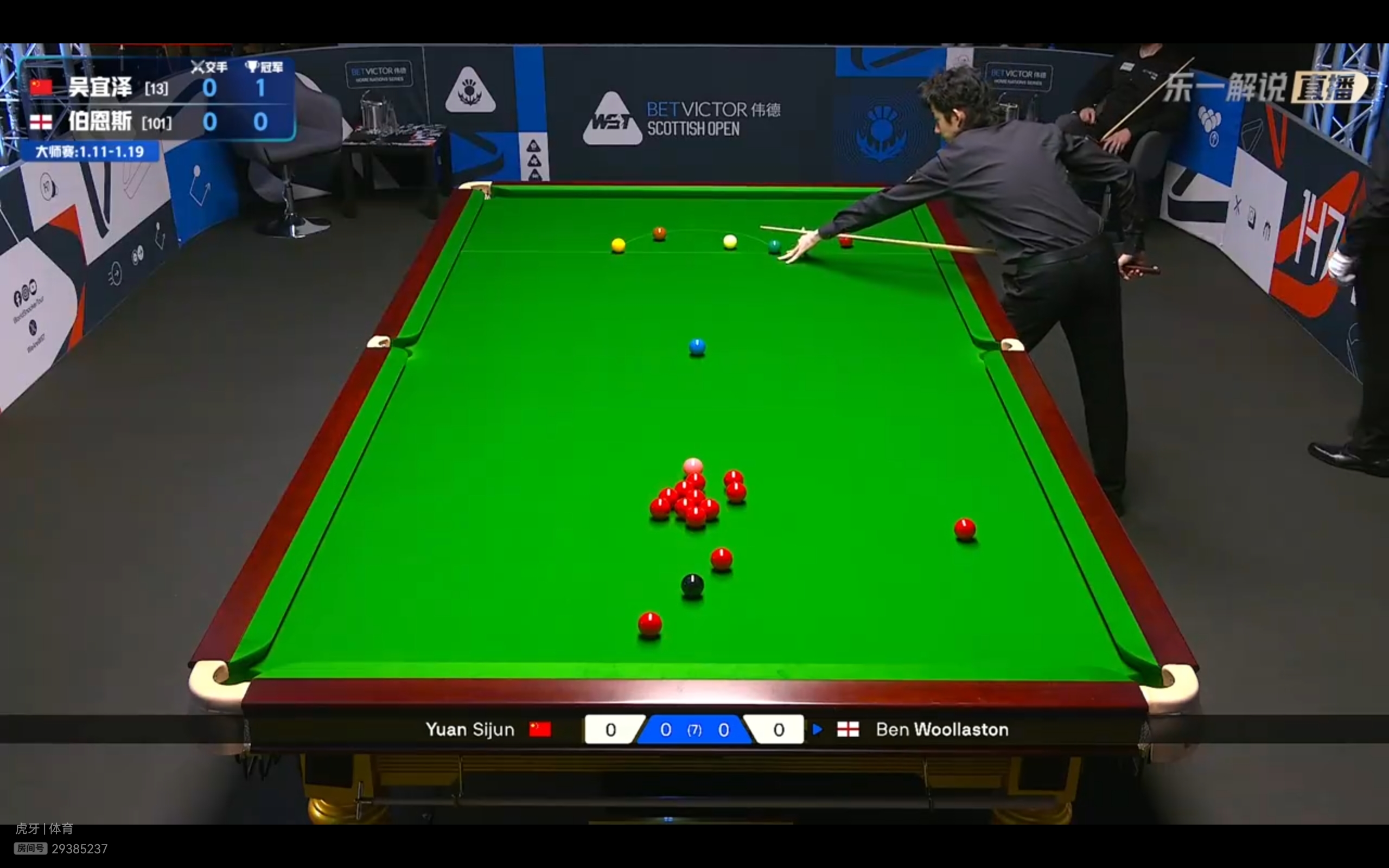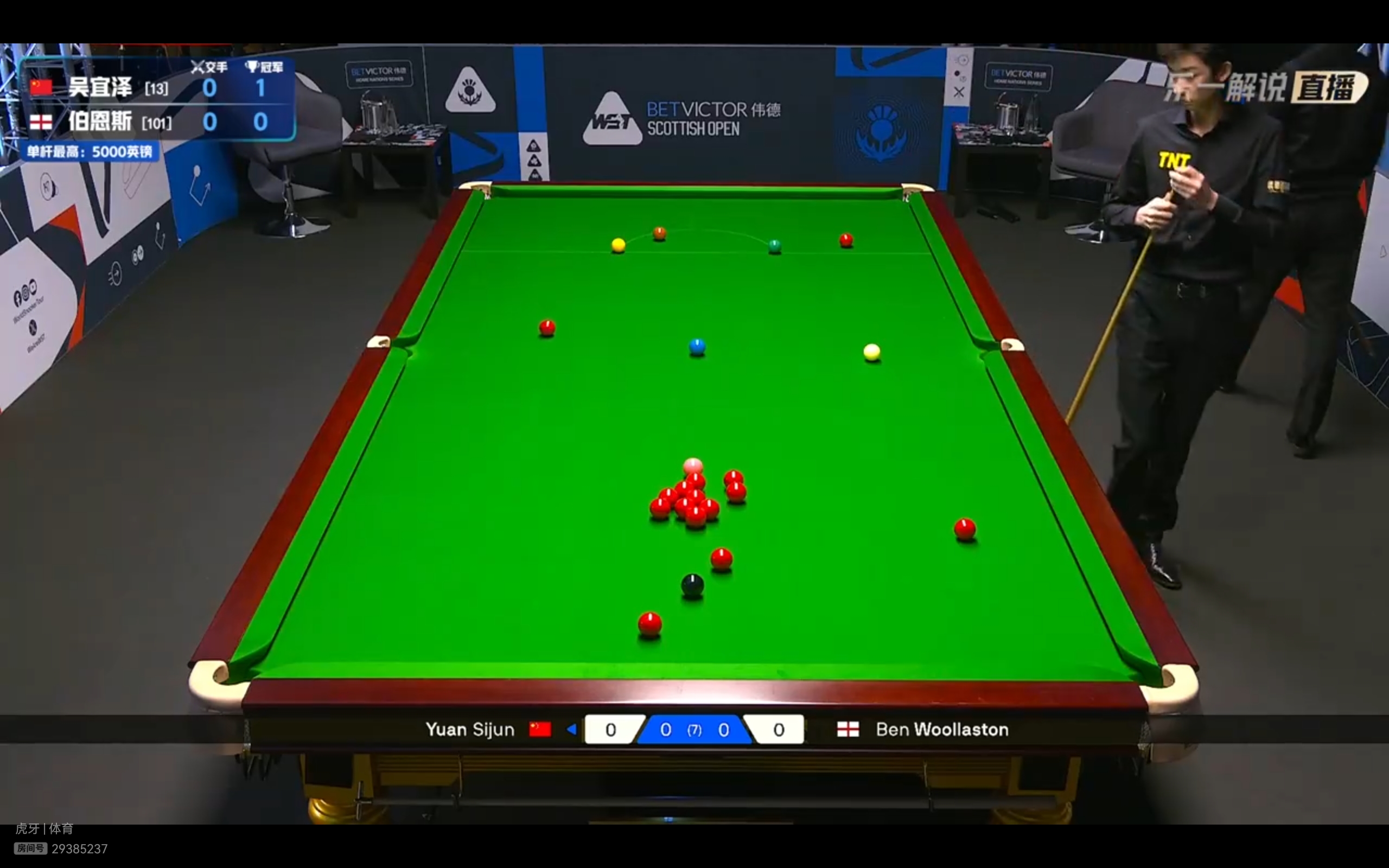 The Snooker Scottish Open match featuring Wu Yize versus Burns is live on Huya and Migu Video streaming services.