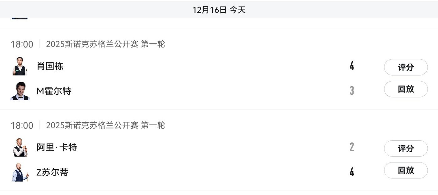 Additionally, in a recently concluded match, Xiao Guodong defeated Holt 4-3 to reach the last 32. Unfortunately, Alikat surprisingly lost to Surti, which is quite disappointing!
