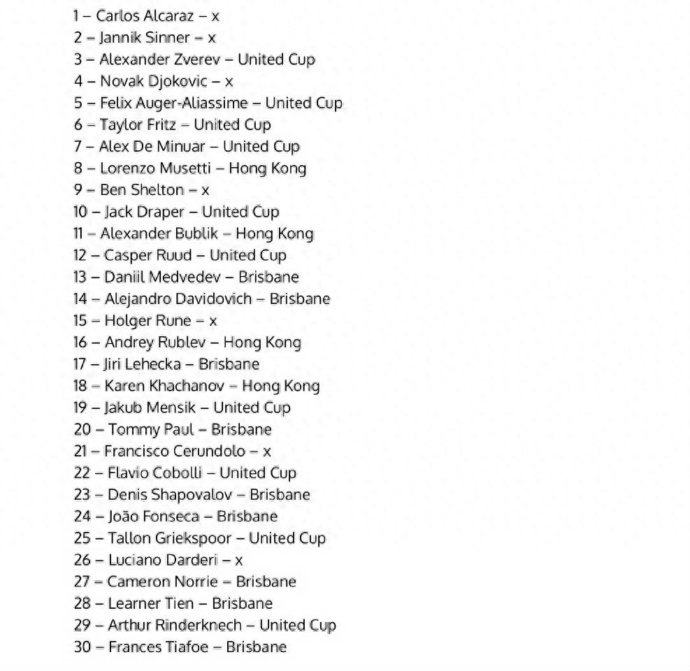 Among the top thirty players, aside from Rune who is recovering from surgery, only Shelton and Darderi have yet to confirm their schedules.