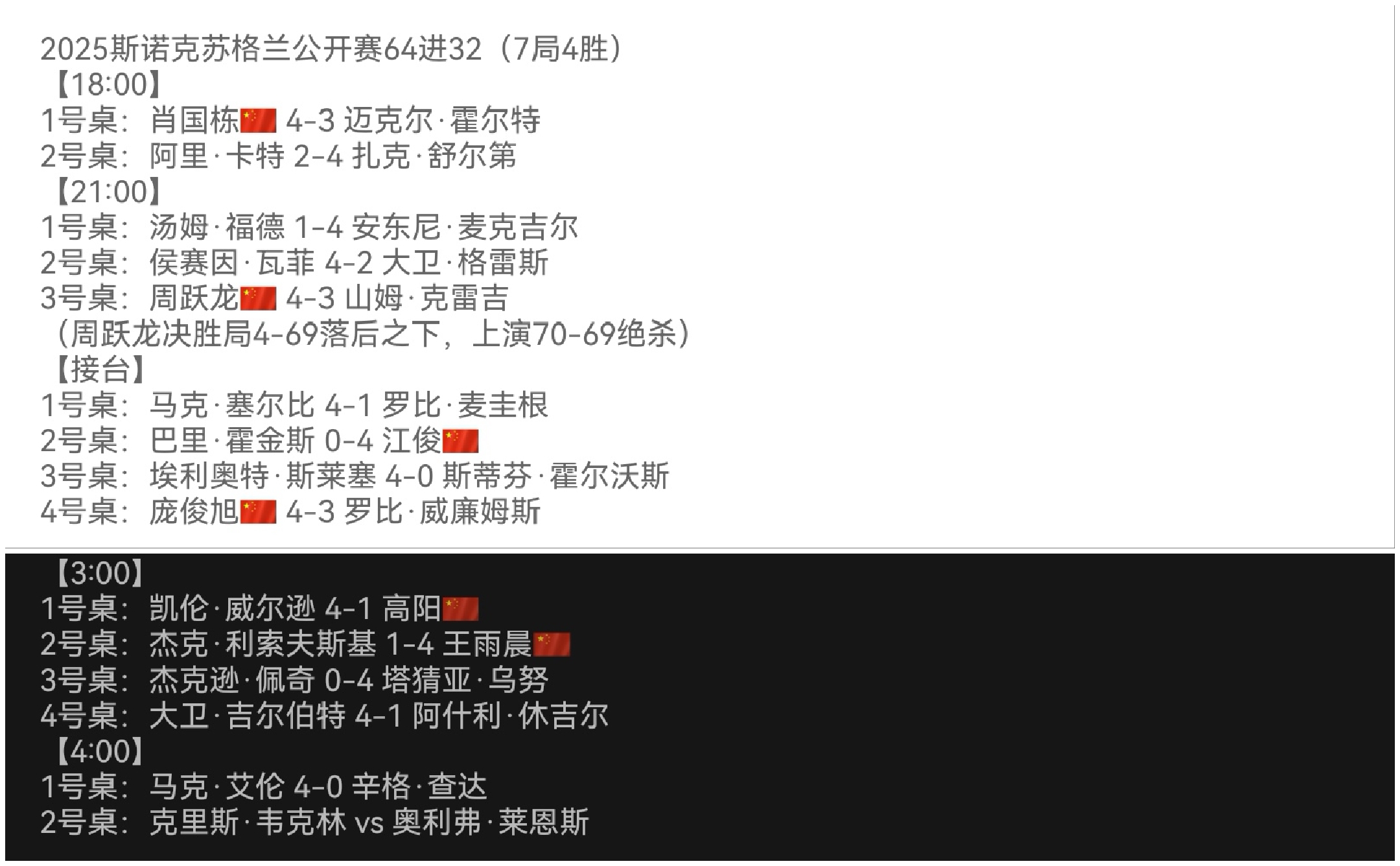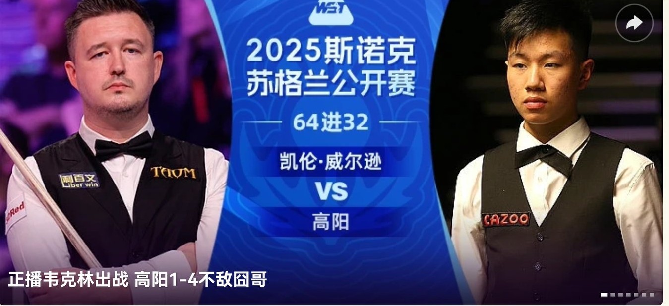 The latest Snooker Scottish Open report shows national players with 5 wins and 1 loss. Xiao Guodong, Zhou Yuelong, and others have progressed to the last 32.