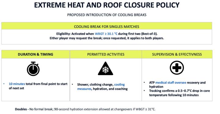 The ATP Board has approved the implementation of the new heat rules starting from the 2026 season. The main provisions are as follows:
