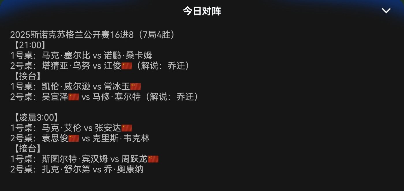 Migu Video and Huya live platforms are streaming the Snooker Scottish Open match between Jiang Jun and Thanawat, along with tonight’s (2025.12.18) schedule.