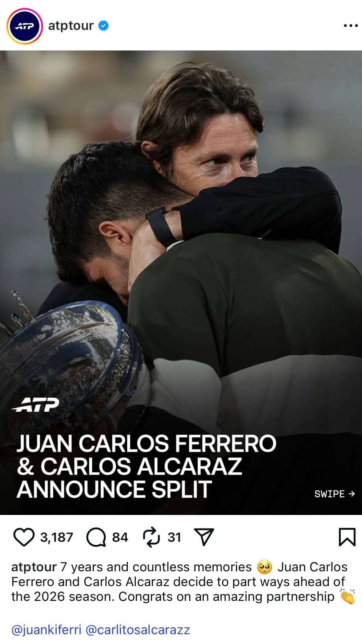 “Parting at the peak?” Many fans interpret this as Ferrero no longer being able to provide Alcaraz with fresh inspiration or constructive advice, directly leading to their separation.