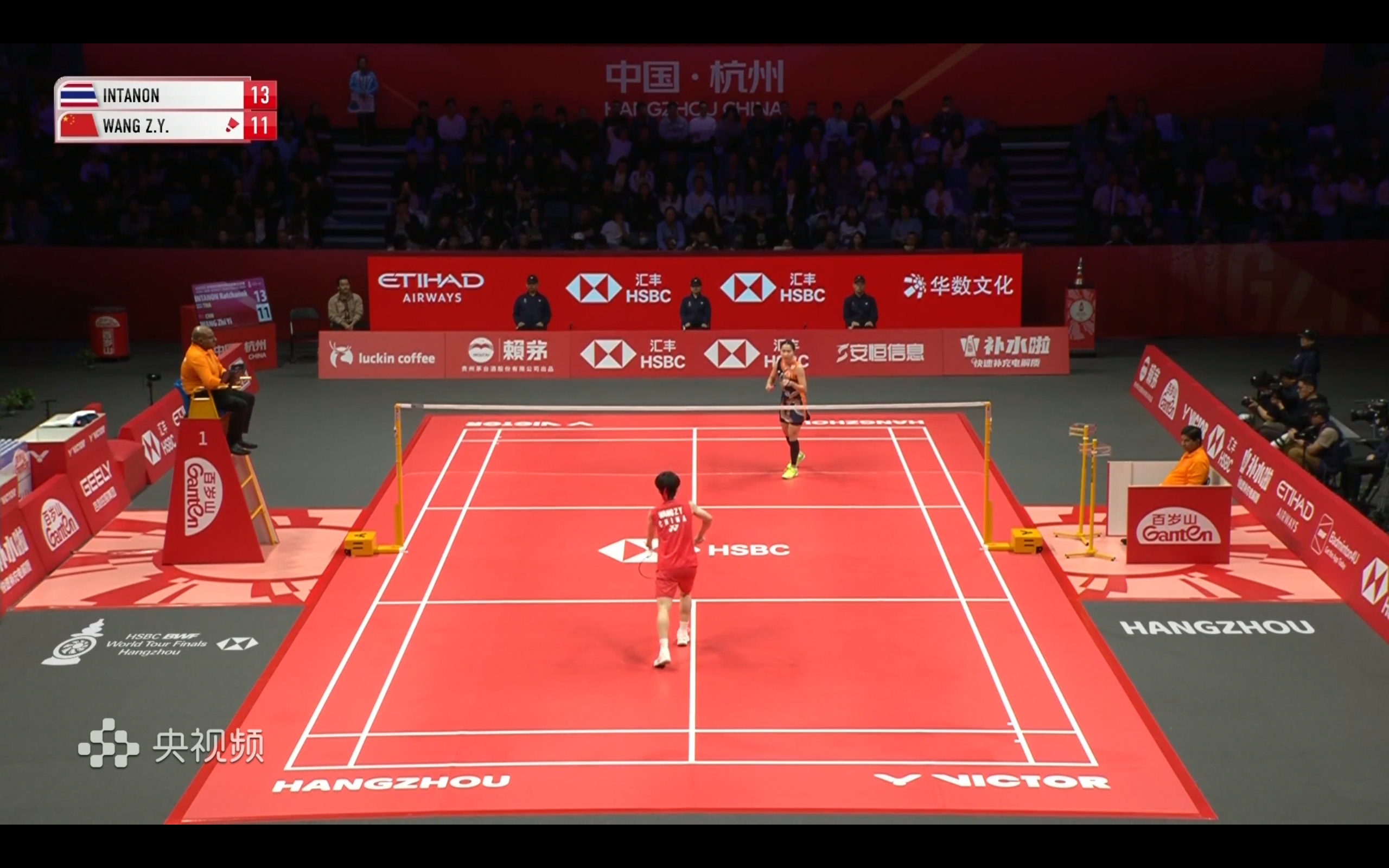 Currently, the first game is in progress, with Wang Zhiyi behind Intanon at 12-13.