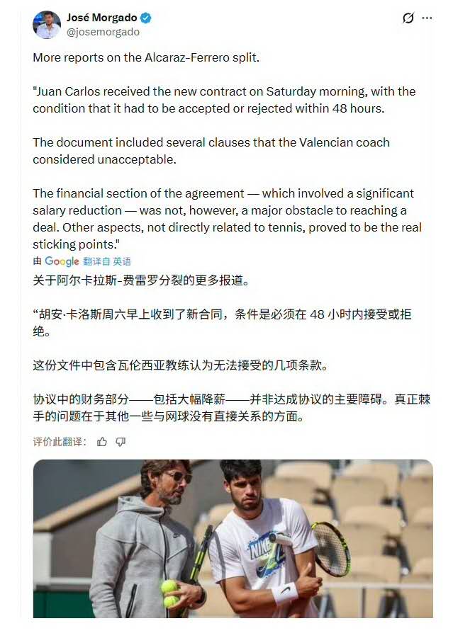 This condition was unacceptable to Ferrero and became the key factor leading to the collapse of their mentor-student relationship. The tennis academy, which Ferrero had invested much effort in, relied on a top player like Alcaraz as its star attraction and training centerpiece.