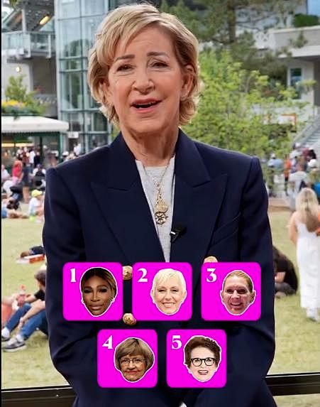 Now, let’s look at other news. Recently, in a media interview, American legend Chris Evert named her top five greatest female tennis players in history: first, Serena Williams; second, Navratilova; third, Graf; fourth, Margaret Court; and fifth, Billie Jean King. She did not include herself, although she certainly qualifies for the all-time top five. Do you have any thoughts on this ranking?
