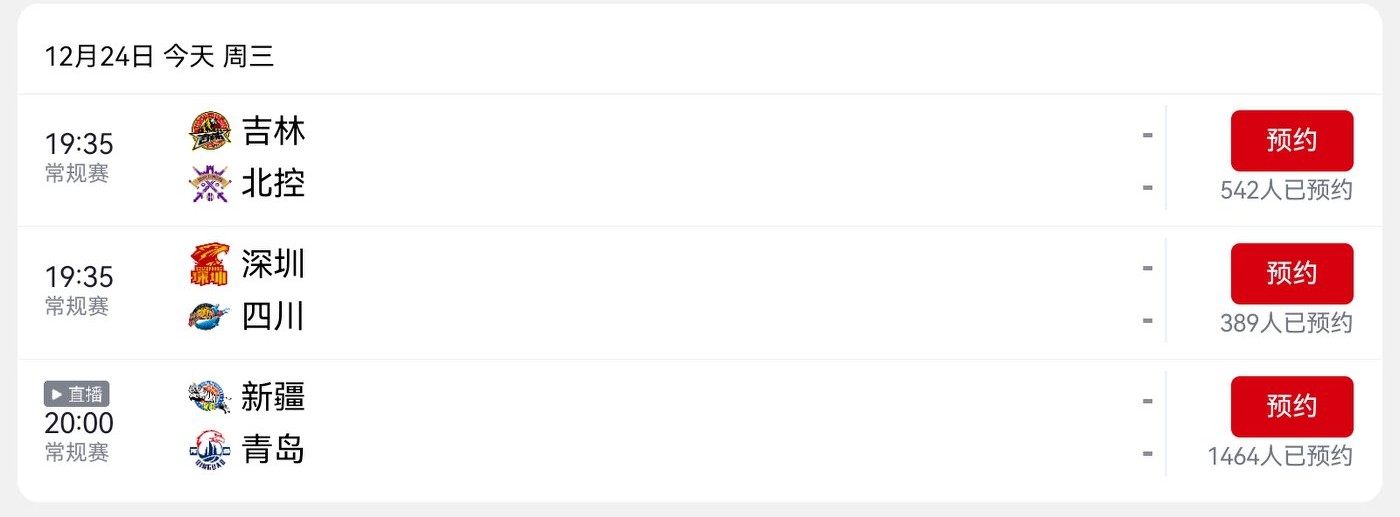 CBA schedule for today (2025.12.24), Xinjiang Yinteli VS Qingdao Laoshan Beer, live on CCTV-5.