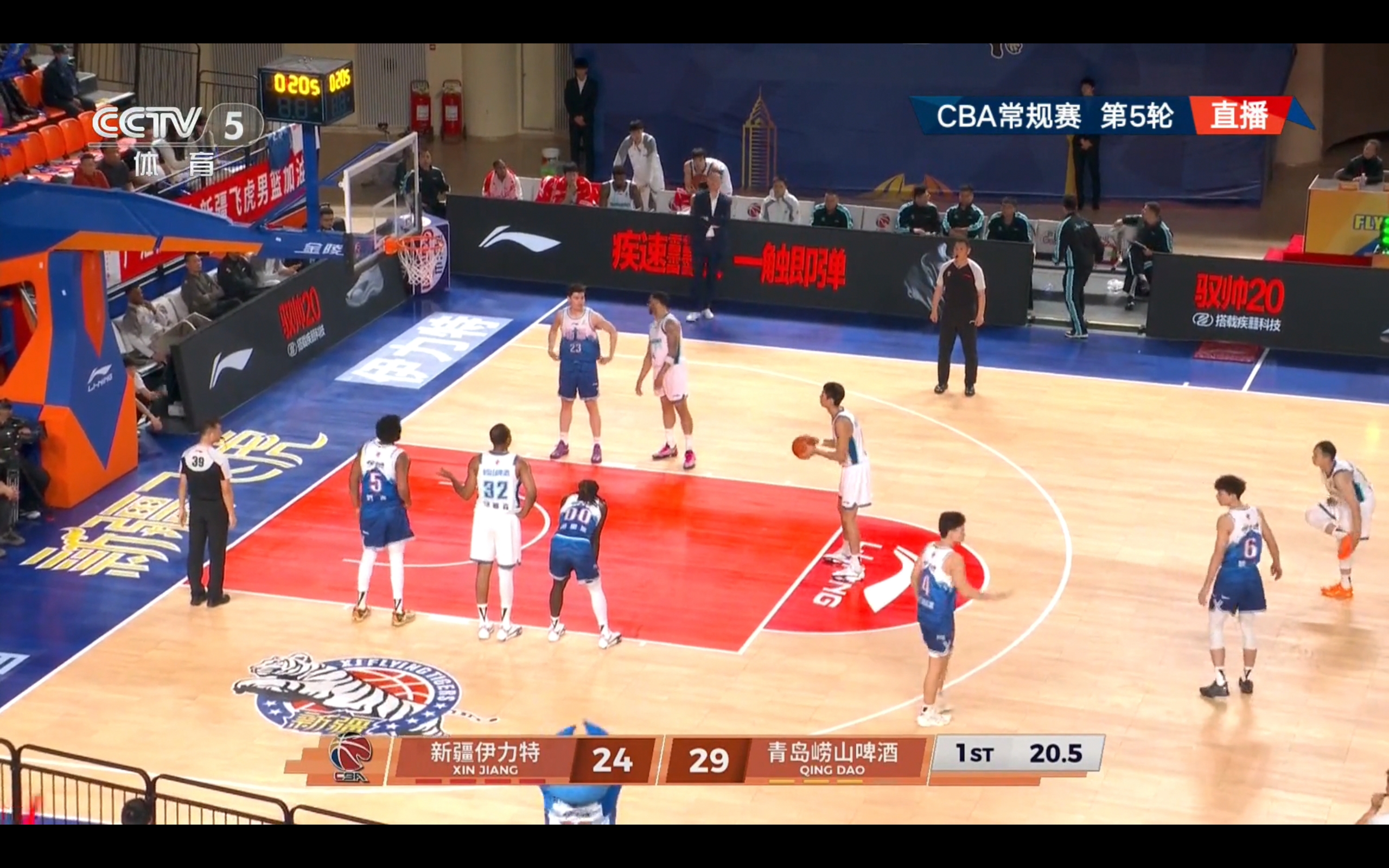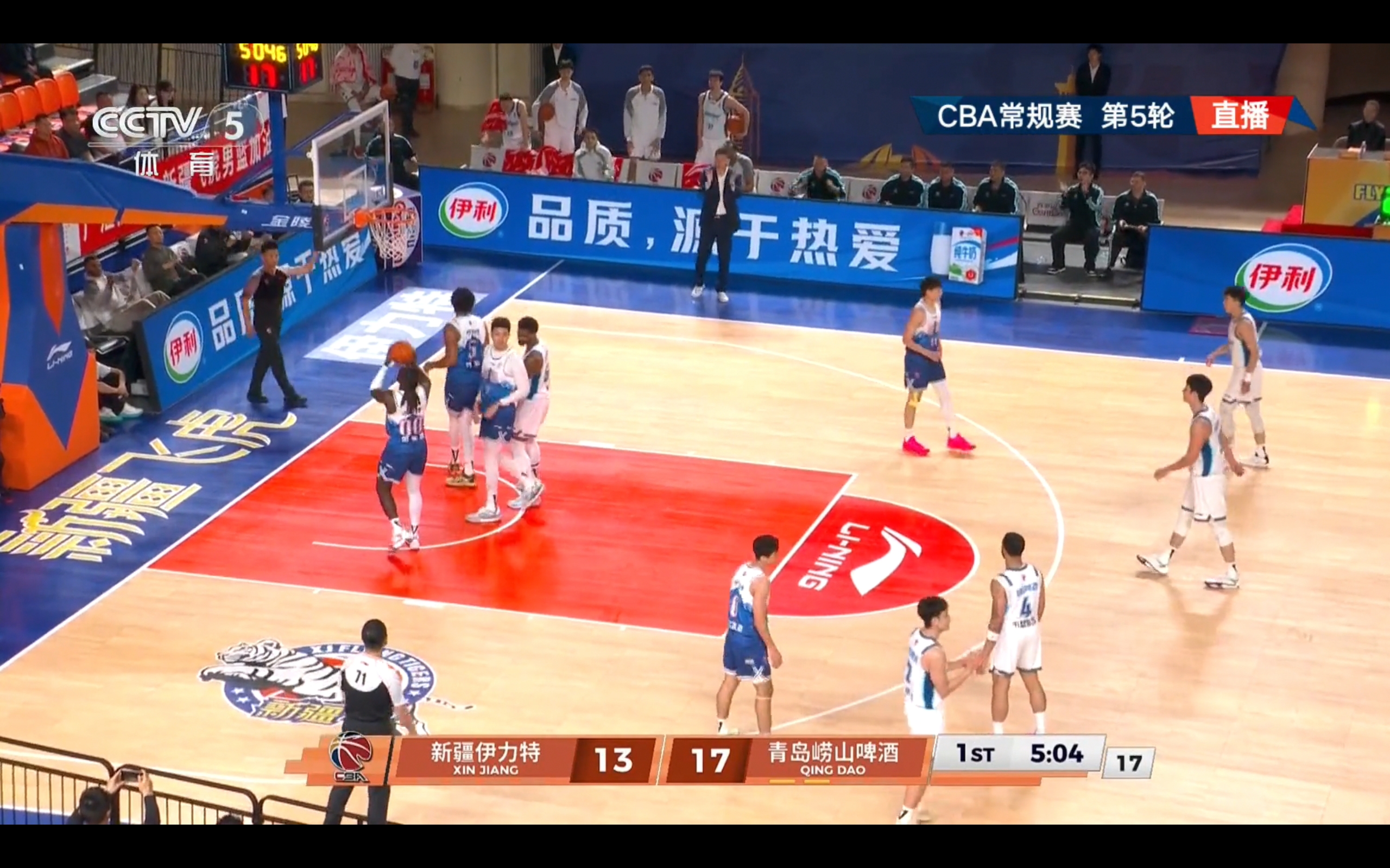CCTV-5 and Yangshipin are broadcasting the CBA match between Xinjiang Yinteli and Qingdao Laoshan Beer live.