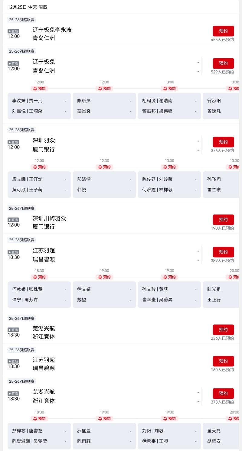 The Badminton Super League today (2025.12.25) has four matches commencing, streamed live on CCTV Video + Youku.