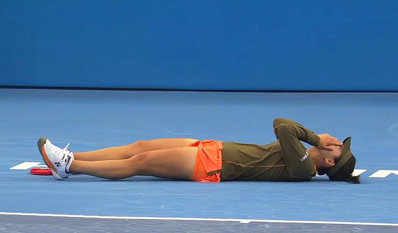 Finally, let’s play a guessing game. The picture below shows a player collapsing in celebration after a victory. Without any hints, can you recognize who she is?