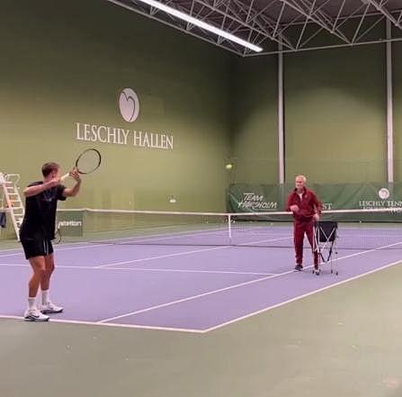 Let’s turn our attention to Denmark’s top player Rune. After undergoing Achilles tendon rupture surgery, Rune entered rehabilitation. From his recent videos and photos, his recovery is progressing very well. From the injury on October 18 to surgery on the 21st, only two months have passed, and his injured left foot is already free of braces; now he has even started targeted ball training indoors.