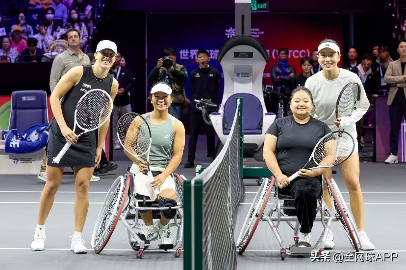 After stage S2, Wang Xinyu and Swiatek teamed up with Chinese wheelchair tennis players Wang Ziying and Zhu Zhenzhen for a heartwarming “match tiebreak battle.” Ultimately, Swiatek and Zhu won 10-2. Afterward, WTCC founder Liu Fei presented exquisite gifts to all four players!