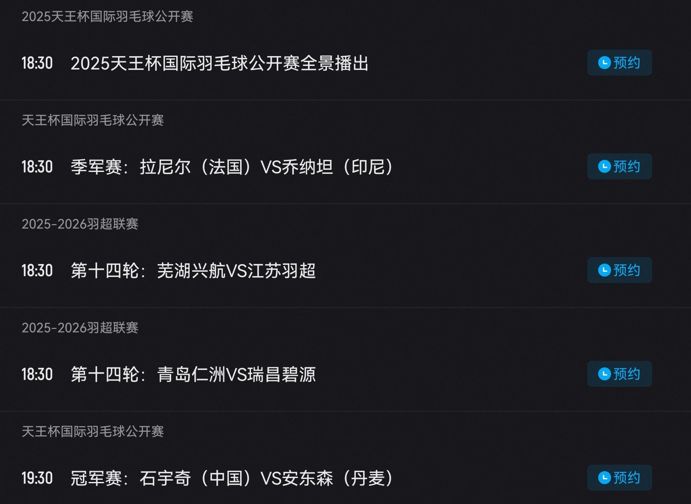 The Thomas Cup schedule today (2025.12.28) includes Shi Yuqi competing, broadcast live on Youku.