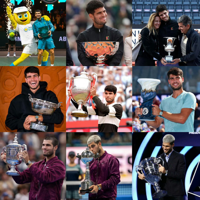 Last night Beijing time, the 2025 International Sports Top Ten Athlete awards organized by Xinhua Sports Department were revealed, with athletes from multiple sports honored among the top ten. Among these ten, one tennis player made the list at second place: the world No.1 men’s singles player, Spanish star Alcaraz. Xinhua’s commentary on the young Spaniard reads, “Alcaraz reached three Grand Slam men’s singles finals this year, winning titles at Roland Garros and the US Open, bringing his career Grand Slam total to six; finishing the year with a 71-9 record and eight titles, securing the year-end world No.1 ranking.”