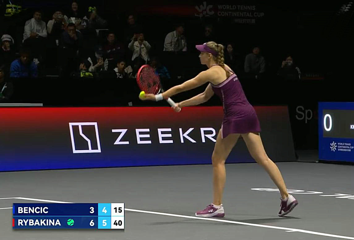 Now let's turn to the WTCC World Tennis Intercontinental Challenge held in Shenzhen. Last night Beijing time, after three days of competition, this star-studded exhibition concluded brilliantly. In the S5 stage, World Team’s Rybakina defeated Europe Team’s Bencic 6-3, 6-4, securing 3 points for the World Team. Then, Rybakina and Rublev won the mixed doubles match 6-4, 6-4 over Swiatek and Vachero, helping the World Team clinch the victory early.