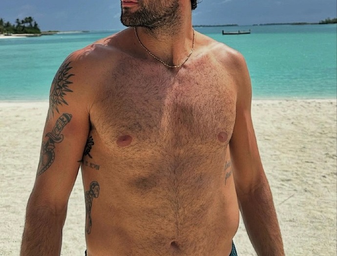 Finally, a guessing game. Below is a shirtless photo of a player. With his eyes and nose obscured and no hints given, can you identify who he is?