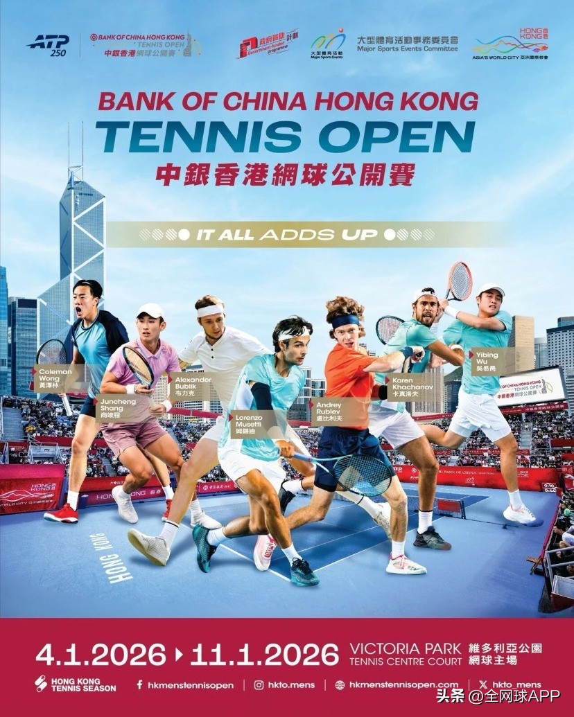 The ATP 250 Hong Kong tournament will be held at Victoria Park from January 5 to 11. Shang Juncheng, Wu Yibing, and Huang Zelin have all received wildcards to enter the main draw directly, while Bu Yunchaokete and Zhou Yi will compete in the qualifiers. The event boasts a strong lineup, including world No. 8 Musetti, as well as top 20 players Rublev, Khachanov, and Bublik. Shang Juncheng is making his third consecutive appearance here, having reached the semifinals in the previous two seasons.