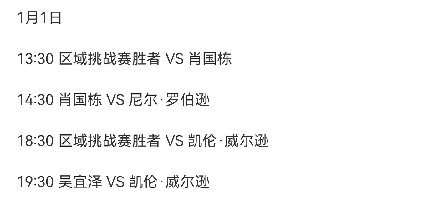 The Snooker Lasa Star Challenge matches today (2026.1.1) will include Xiao Guodong, Wu Yize, Neil Robertson, and Kyren Wilson, broadcast live on Huya.