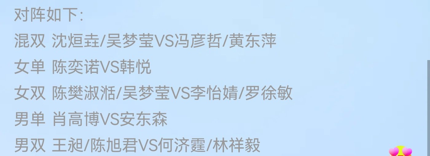 If we consider only the regular performance strength of both sides, Xiamen Bank is very likely to win and move on to the final. Xiamen Bank’s players are extremely strong: in the first set, Huang Dongping and Feng Yanzhe, ranked number one in the world, are expected to win. The second set features Han Yue, a key national team player; the third set is women’s doubles Li Yijing and Luo Xumin, also national team mainstays; and the fourth set has Antonsen, a world-class star. Therefore, Xiamen Bank is very likely to win 3-0 and advance to the final. What do you all think?