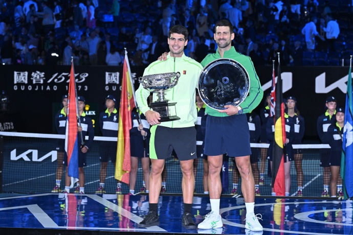 On the men's singles court, the showdown between Djokovic and Alcaraz surprised and delighted fans alike. The veteran and the rising star delivered numerous spectacular shots in the final. Despite losing the first set, Alcaraz won the next three sets consecutively, capturing his first Australian Open men's singles title in his debut final and marking his seventh Grand Slam victory overall. Alcaraz also became the ninth male player to achieve a career Grand Slam, and at 22 years and 272 days old, he is the youngest male player in history to win all four majors.