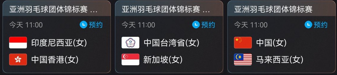 The Asian Badminton Team Championships today (2026.2.4) schedule includes China against Malaysia, broadcast live on CCTV Video and Youku.