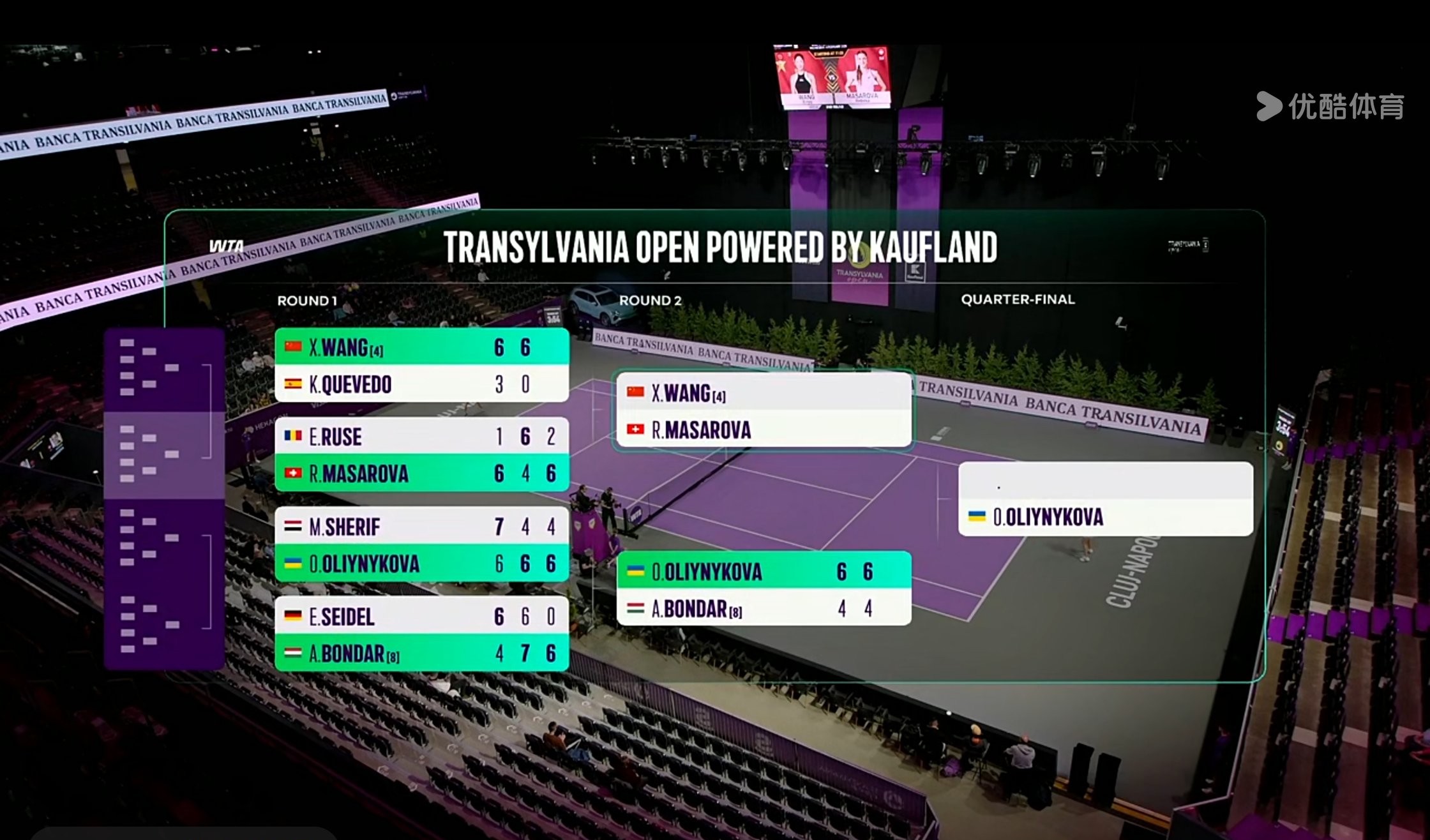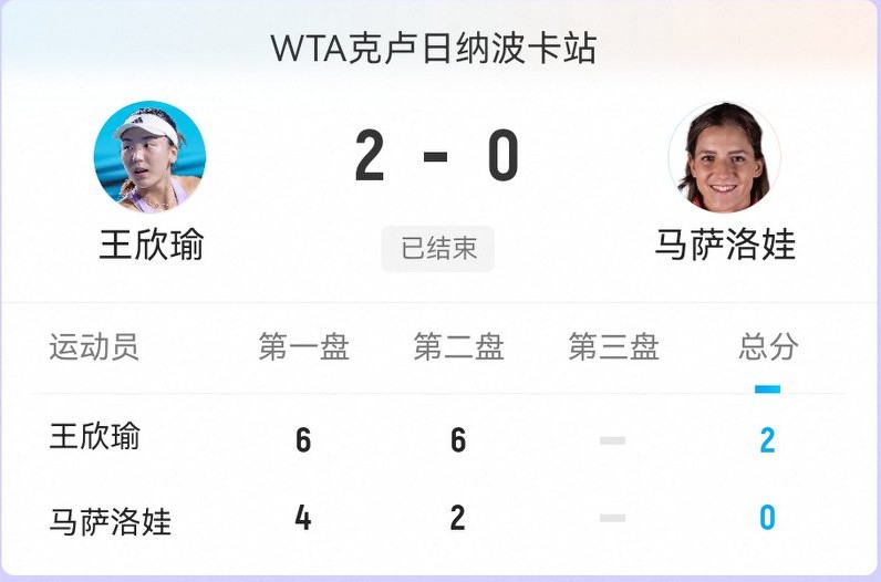 Wang Xinyu won against Masarova with scores of 6-4 and 6-2, achieving a straight-sets 2-0 victory to advance to the quarterfinals.