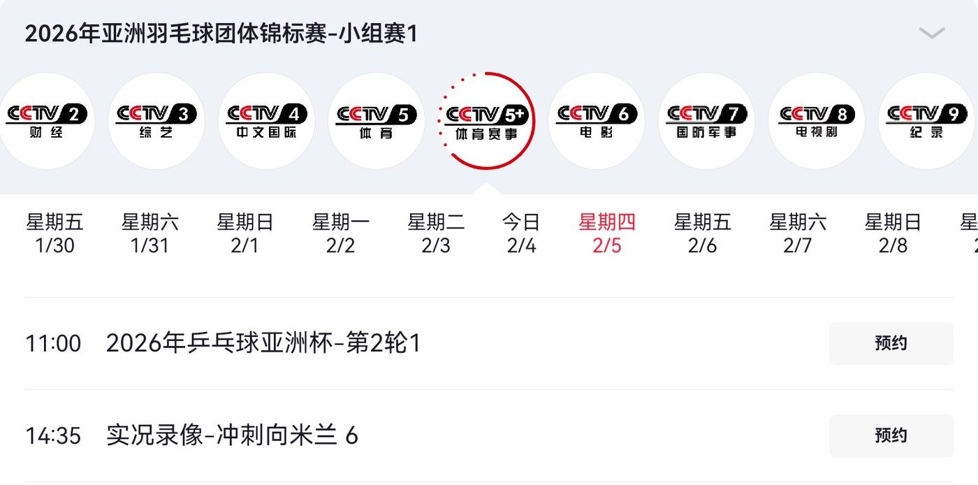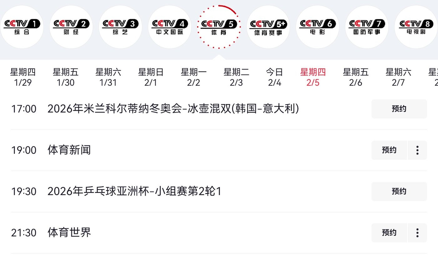 The detailed live broadcast schedule on CCTV-5 and CCTV Video app is shown in the image below.