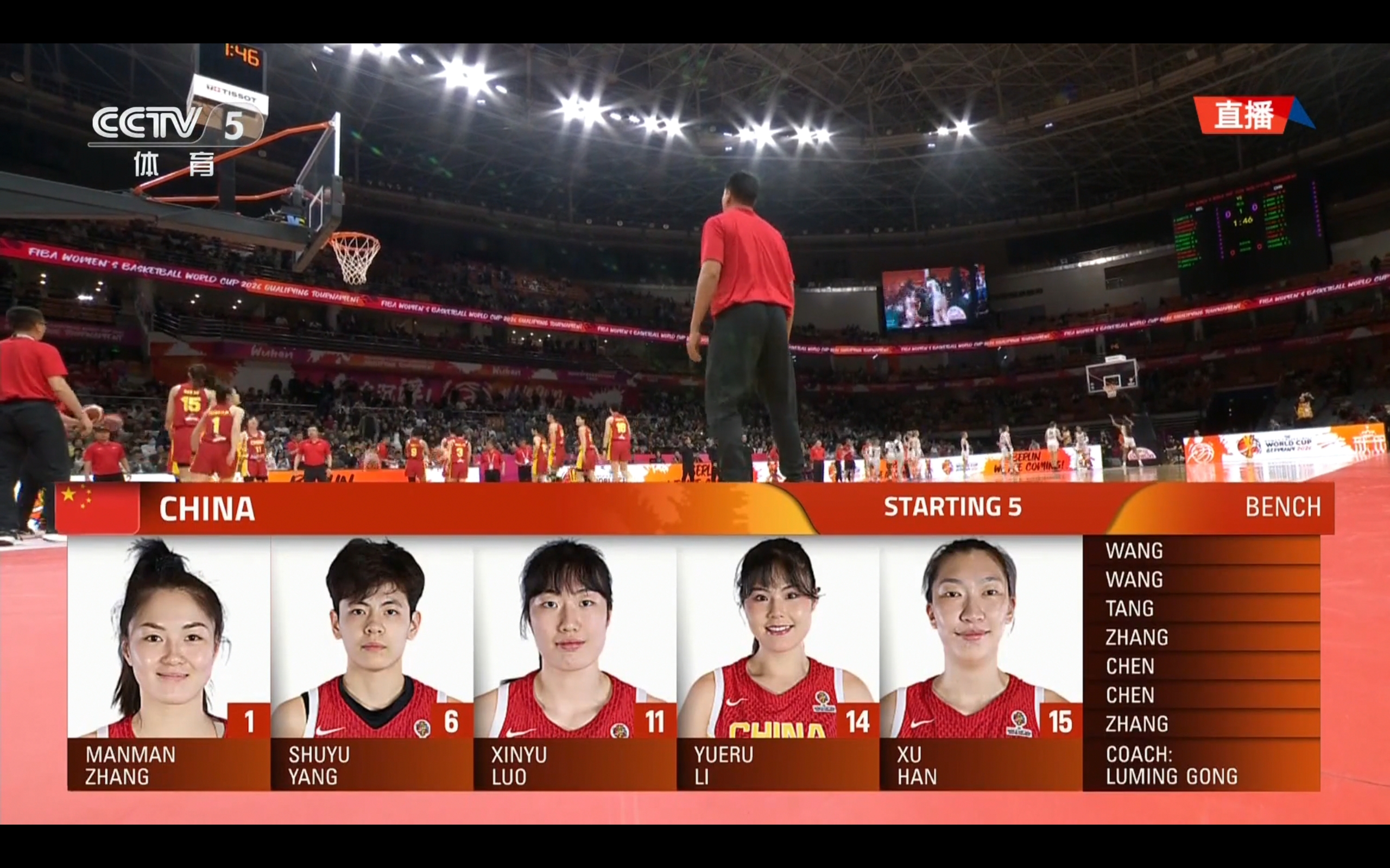 CCTV-5 is live broadcasting the Women's Basketball World Cup Qualifier match: China vs Belgium.