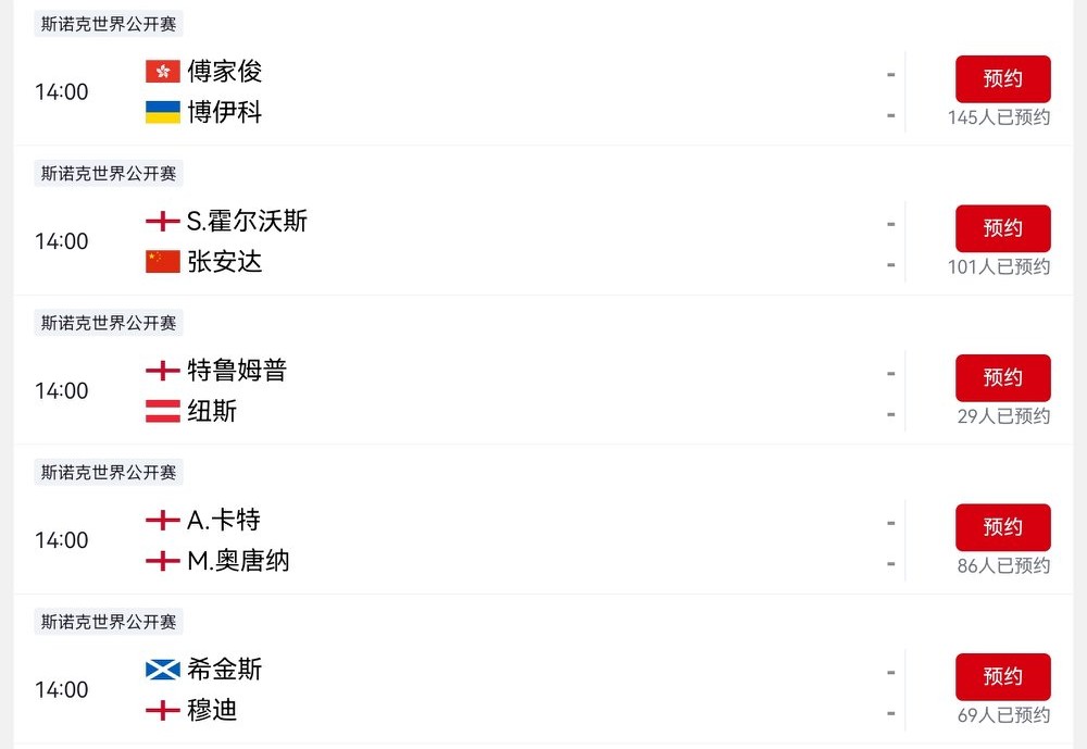 • 2. Afternoon session at 2 PM:Two Chinese players compete in two matches:Zhang Anda vs. Hallworth, Marco Fu vs. Boiko.Personal prediction: Zhang Anda and Marco Fu will win and advance to the round of 32.Additionally, Trump, Higgins, and Ali Carter will also compete during this session.