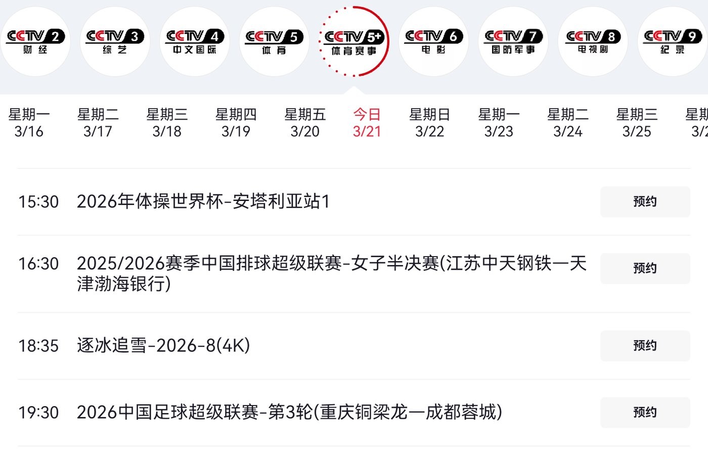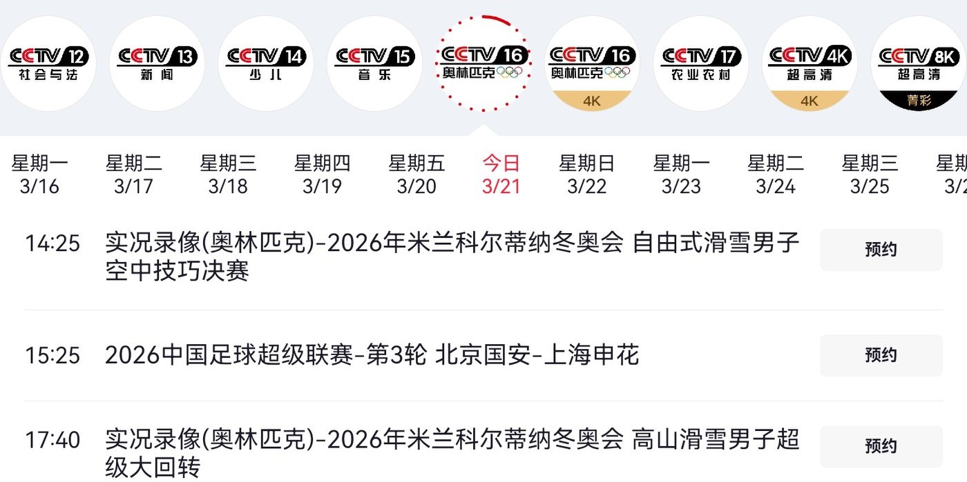 Details of CCTV Sports' live broadcast plan are shown in the image below.