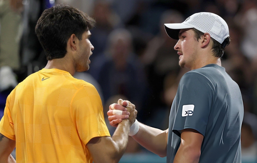 Carlos Alcaraz demonstrates his caliber through an impressive display against the tennis prodigy Joao Fonseca in his debut match at the Miami Open.
