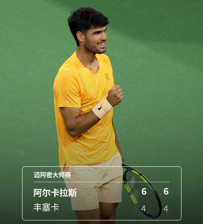 In a second-round highlight match, top seed and world No.1 Alcaraz performed steadily, defeating Brazilian newcomer Fonseca 6-4, 6-4, winning their first encounter. Compared to Sinner's narrow double tie-break win at Indian Wells, Alcaraz's two 6-4 victories over young Fonseca impressed fans even more. In the third round, the world No.1 will face local 32nd seed Korda.