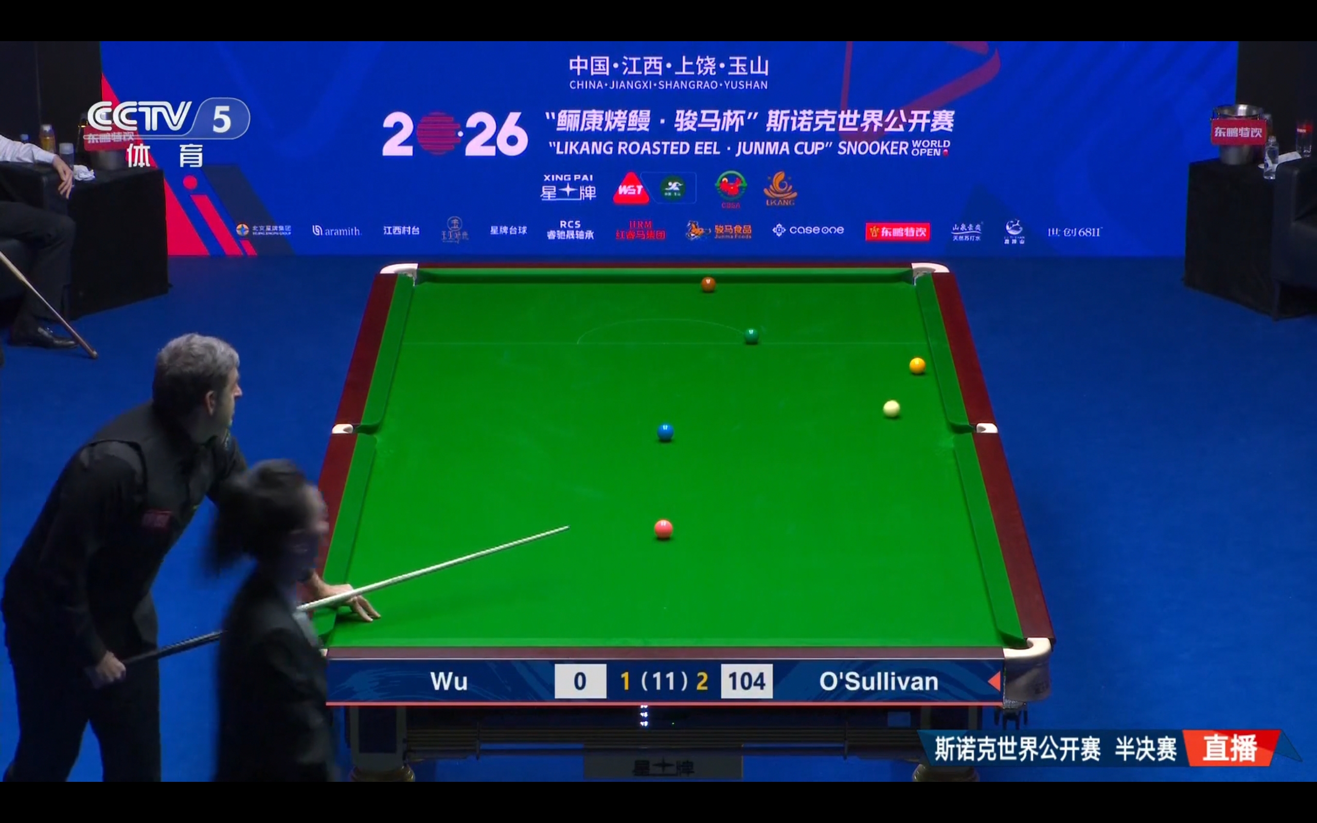 CCTV-5 and the CCTV app are live broadcasting the World Open Snooker semifinal match between Wu Yize and O'Sullivan.