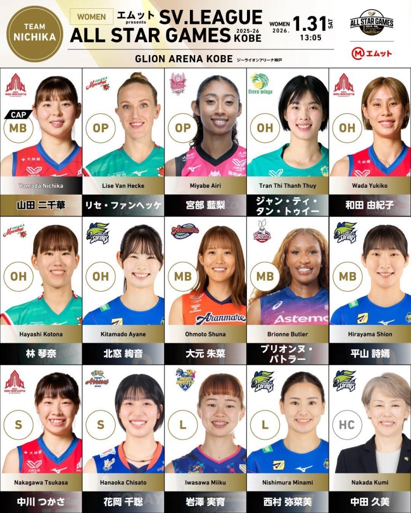 Here, the captain of the Vietnamese women's volleyball team will be part of Team Nichika, alongside top players like Yukiko Wada, Airi Miyabe, Kotona Hayashi, and Lise Van Hecke.